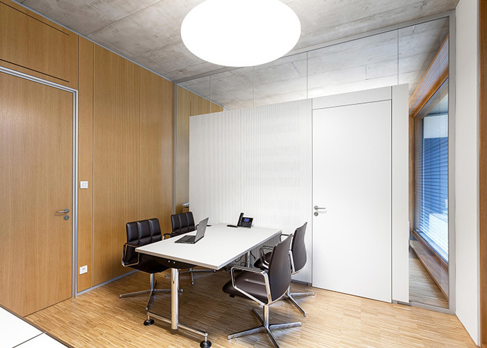 Sin embargo, las superficies decorativas hechas de laminado HPL/CPL o recubrimiento directo de resina de melamina también se utilizan para el diseño creativo de las oficinas de firmas de arquitectura e interiorismo de renombre.Las particiones de las habitaciones con superficies textiles de tela o fieltro crean un carácter hogareño, mientras que cubre las paredes de los elementos con superficies de chapa de acero o vidrio recubiertas en polvo con impresión opaca en la parte posterior permite que se utilicen como pizarras