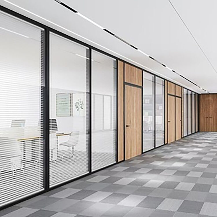 Características del diseño | Partición de vidrio enmarcada insonorizada con obturación de privacidad |